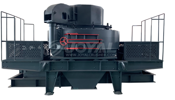 物料由機器上部垂直落入高速旋轉的葉輪內,在高速離心力的作用下,與另一部分以傘狀形式分流在葉輪四周的物料產生高速撞擊而破碎,物料在相互撞擊后,又會在葉輪和機殼之間形成渦流并多次的互相撞擊、摩擦而粉碎,從下部垂直排出,通過篩分設備篩分出所要求的成品粒度。是市面上人工制砂和石料整形領域的設備。